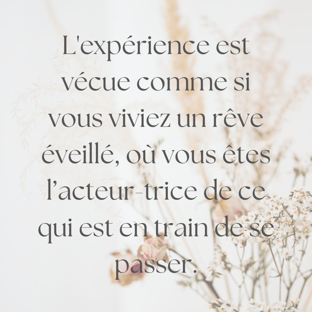 La personne qui consulte a donc un contrôle total sur ce qui se passe grâce à l’état de conscience augmentée.